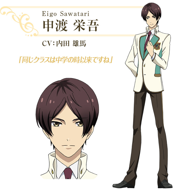 所属:綾薙学園(MS)2年生 身長:170cm 血液型:B型 誕生日:11月28日 team柊の参謀的ポジション。 感性よりも分析力でミュージカルを修得するタイプ。 月皇や辰己と同じく綾薙学園中等部出身で、成績優秀者。 辰己とは家族同志でも親交があり、よく行動を共にする。