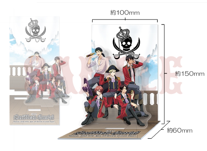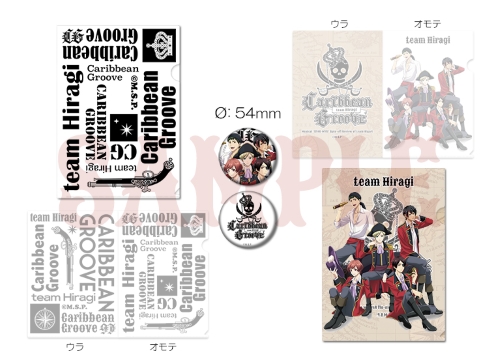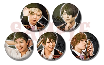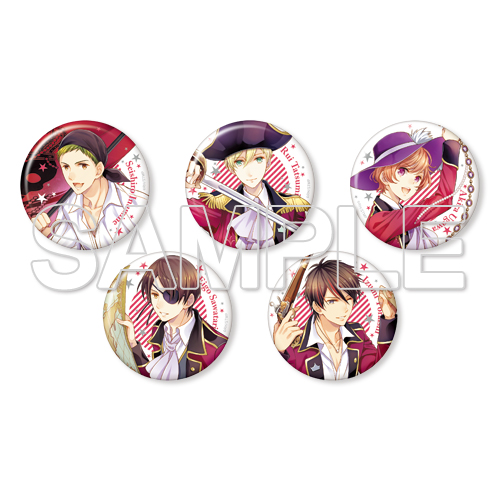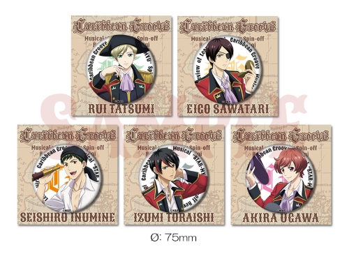 公式コミカライズ作家・氷堂れん先生が描き下ろした『Caribbean Groove』衣裳イラストを使用した缶バッジ5点セット。缶バッジサイズ54mm。